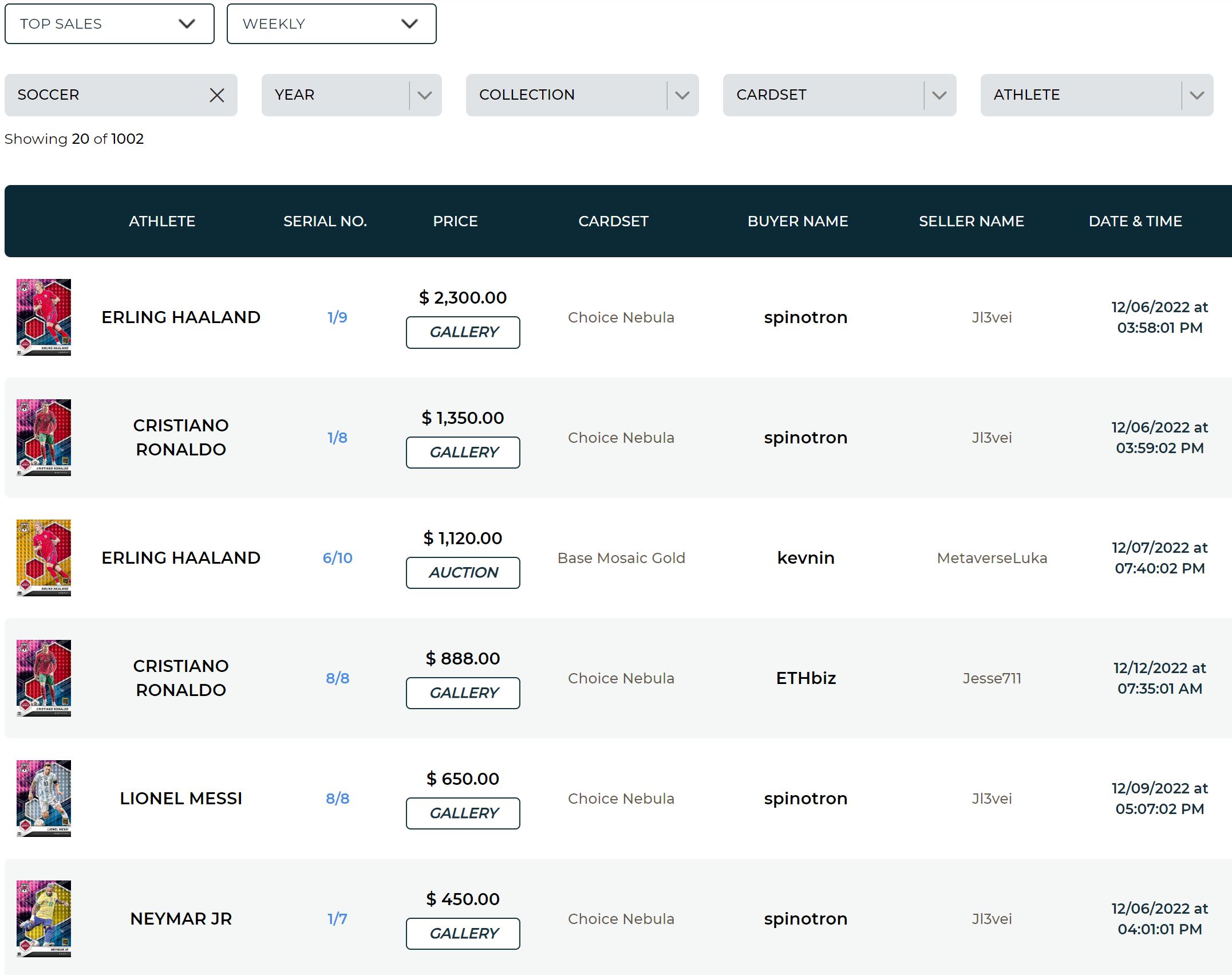 So where does that leave us and our licensed soccer NFT’s? Well, not nearly as bad as you might expect… Don’t forget, THESE ARE FIRSTS!