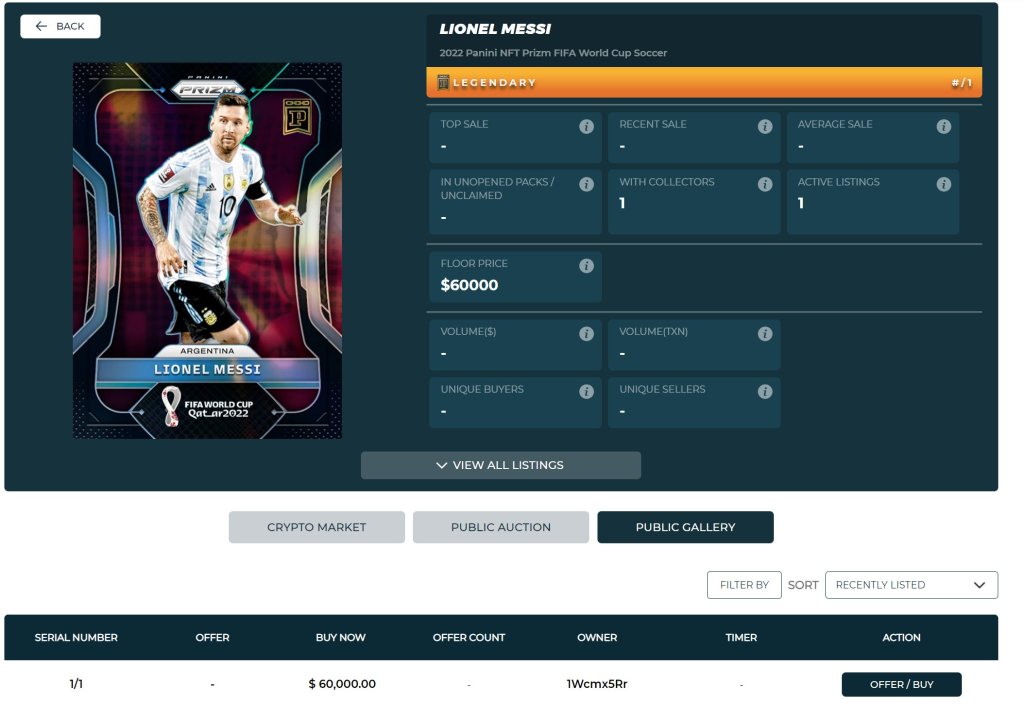 Yes you read that correctly. Not $30,000, but a $35,000 (HOLY #@%&) sale for the Messi 1/1 Base Black World Cup Prizm NFT was recorded ON CHAIN overnight at Panini! And not without some late night drama to go along with it…