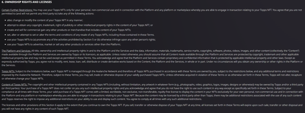 As Paul points out above, it starts with the terms and conditions you agree to when you make a purchase, so let’s start by taking a look at some distinctly different terms from lets say…..ToppsNFTs.